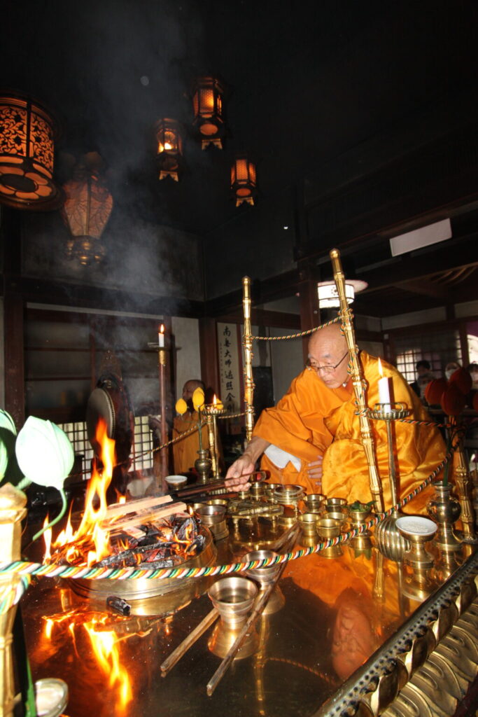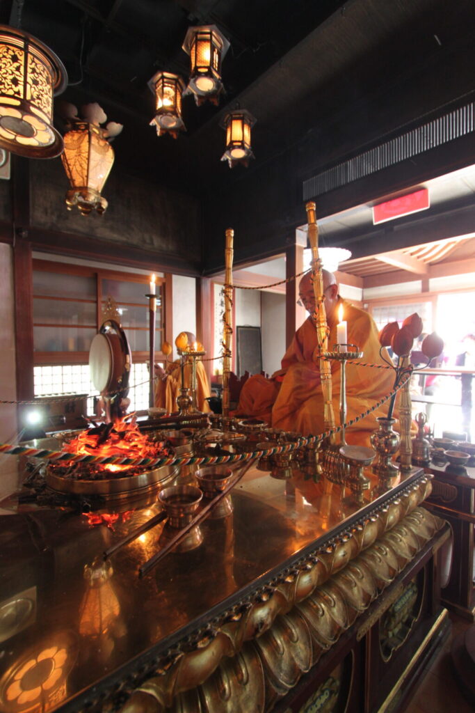 皆さん、道中の移動も大変でしたけれど、仏さまの御前にて、神聖なお護摩の火を見られて、大変感動されておられたようでした。