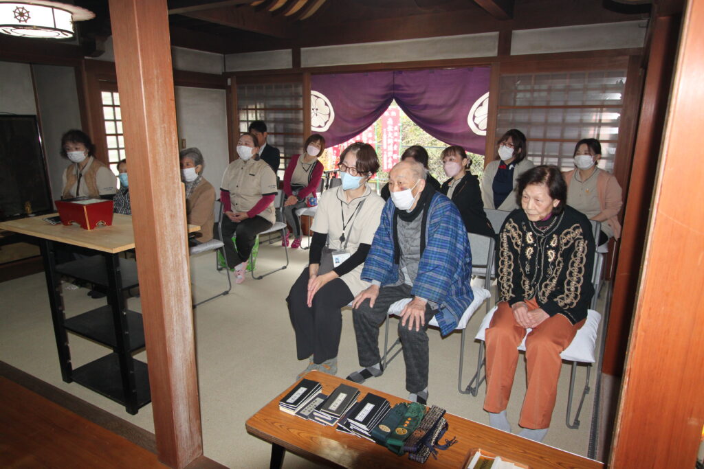 今回は、地域のボランティア活動の一環として、介護医療施設「さわや家」さんの施設利用者の方々と、職員の方々14名を、護摩祈祷の体験をして頂こうと招待致しました。