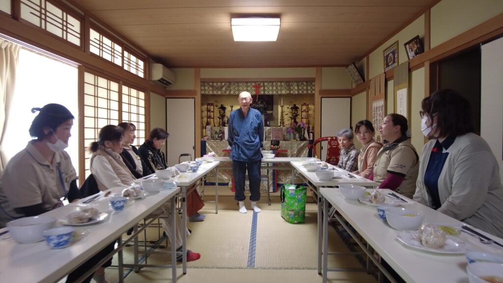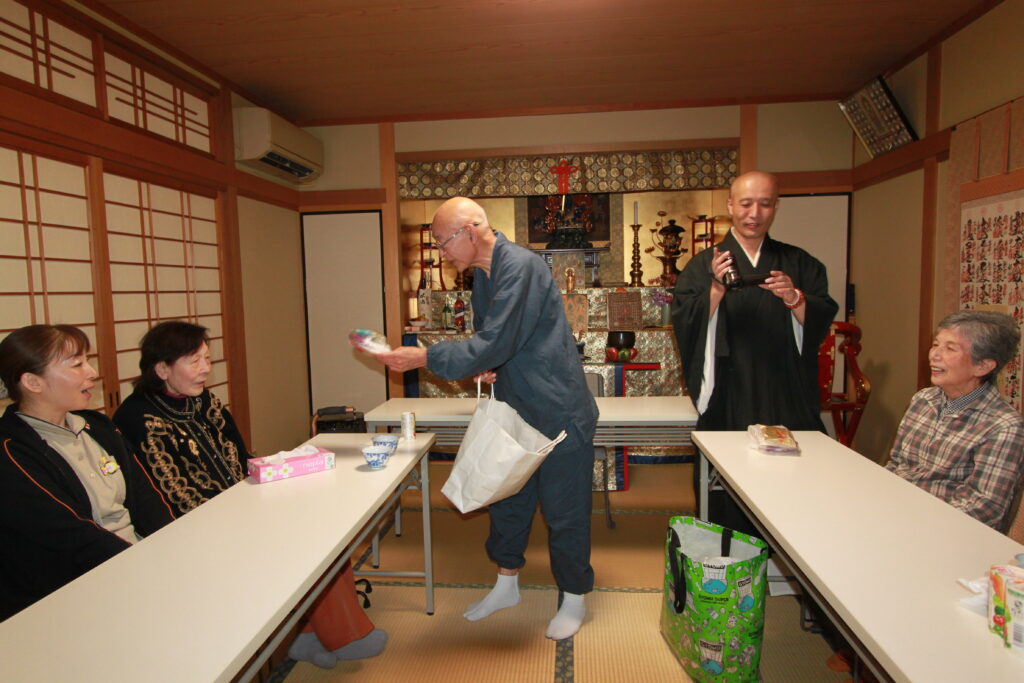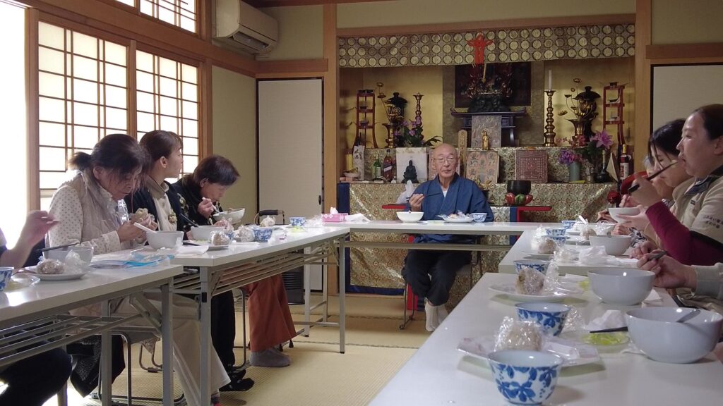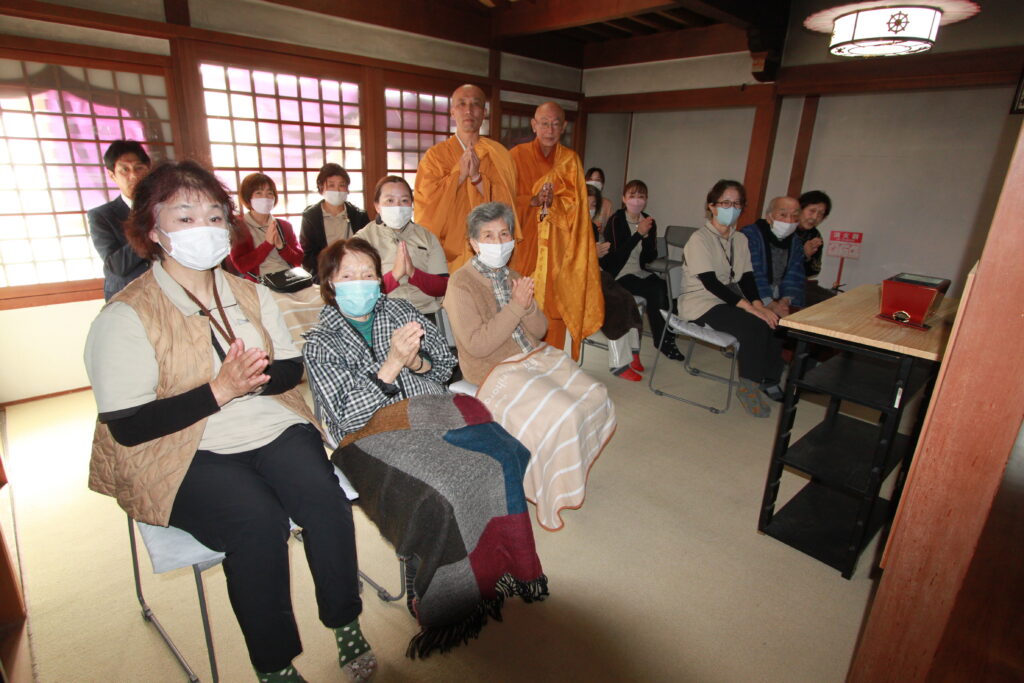 お足の不自由な方もおられる中、みなさんで協力しながら、本堂での護摩祈祷、大広間で食事会と、和気藹々とした時間を過ごして頂くことが出来ました。