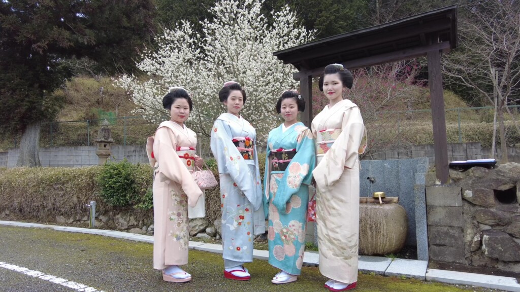 山あいの静謐な寺が、まるで花が咲いたように華やぎ、それは今は見頃の境内の白梅と相まって、あまりにみやびな美しさを醸し出しておりました。